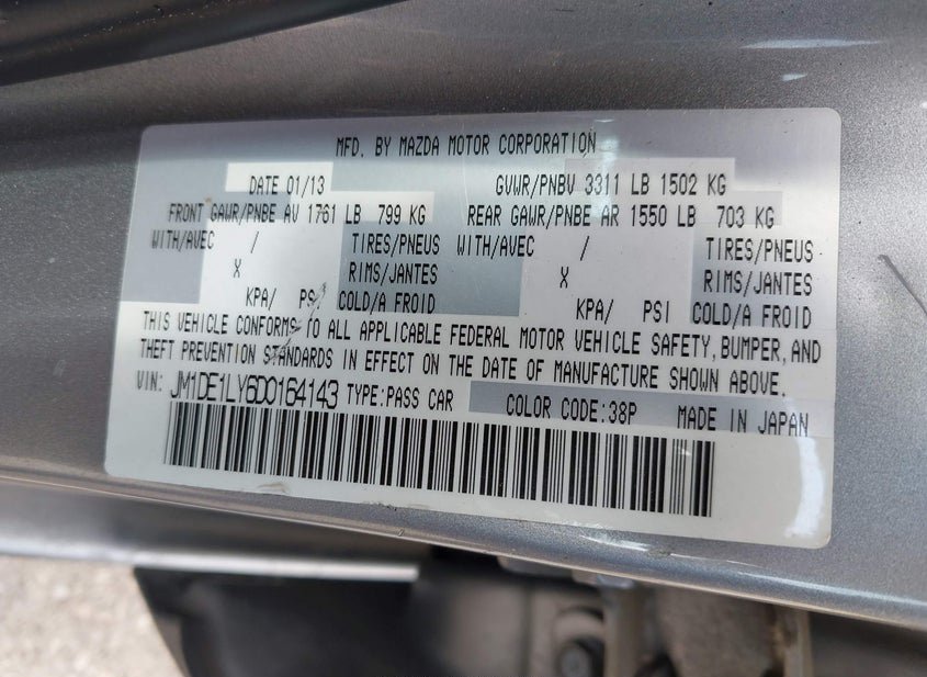 - VIN: JM1DE1LY6D0164143