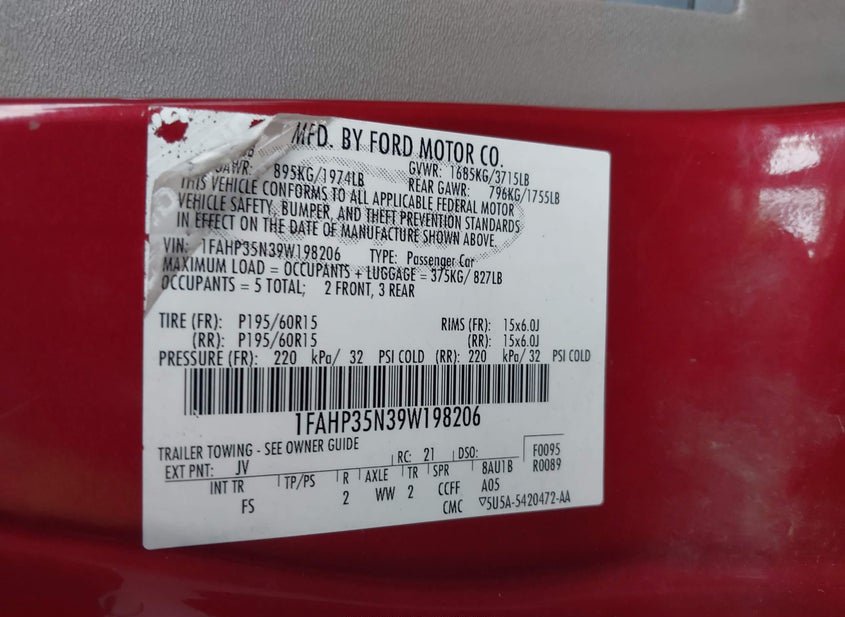 - VIN: 1FAHP35N39W198206