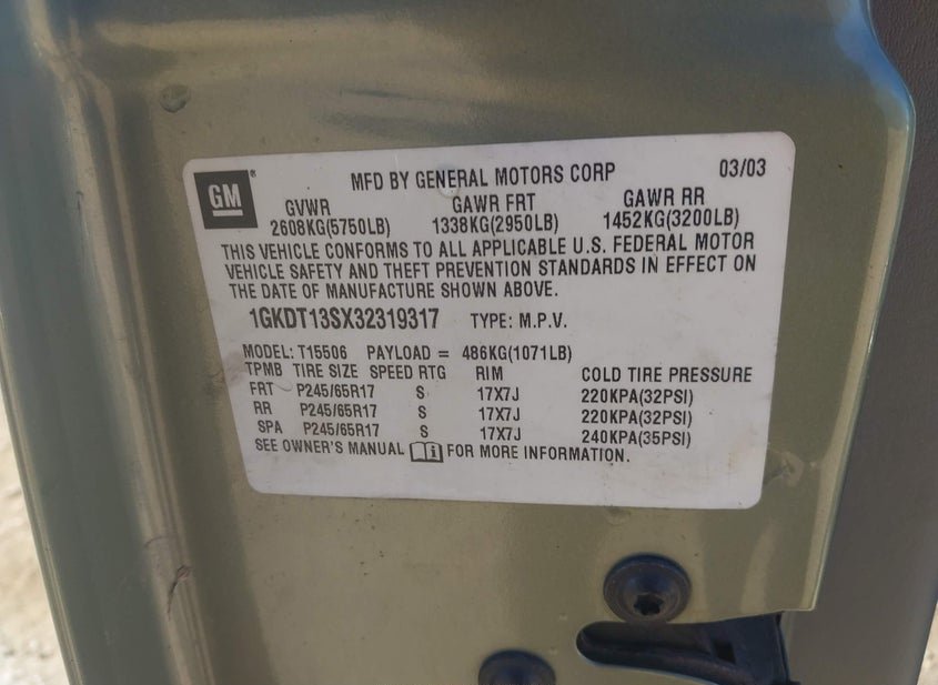 - VIN: 1GKDT13SX32319317