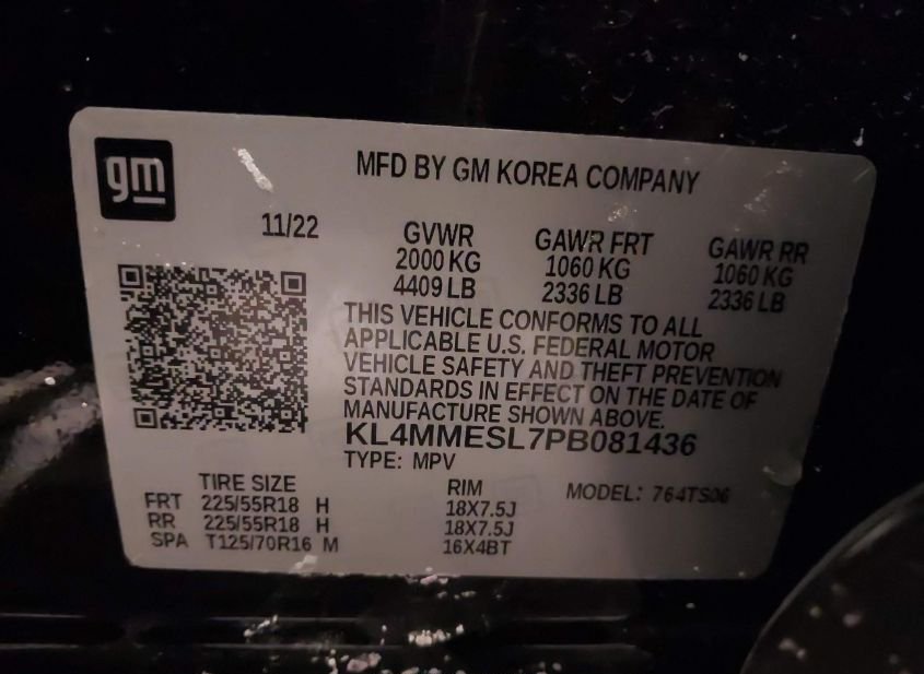- VIN: KL4MMESL7PB081436