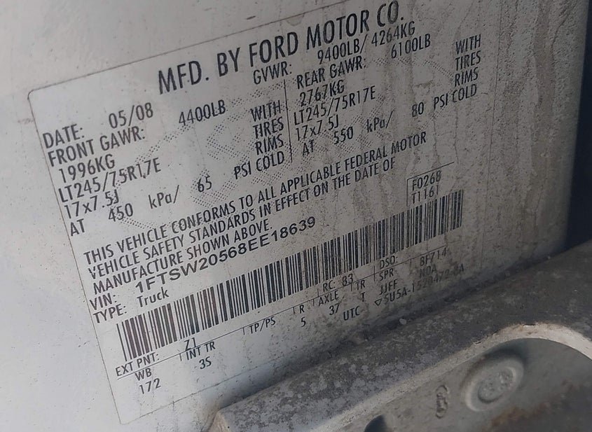- VIN: 1FTSW20568EE18639