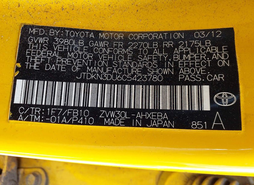 - VIN: JTDKN3DU6C5423780