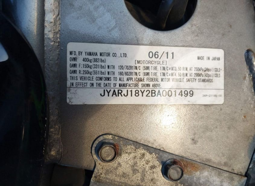- VIN: JYARJ18Y2BA001499