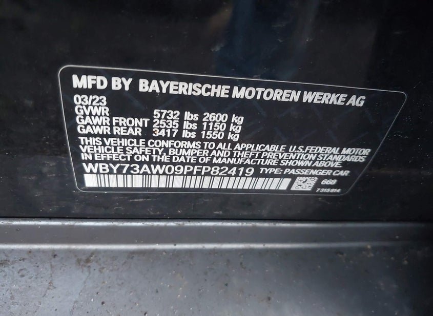 - VIN: WBY73AW09PFP82419