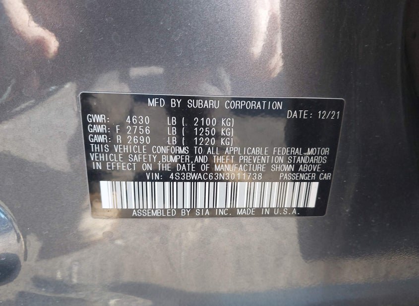 - Название лота: 2022 SUBARU LEGACY PREMIUM