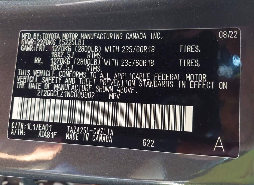 - VIN: 2T2GGCEZ1NC009902