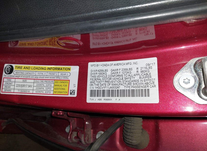 - VIN: 1HGCV1F11JA003247