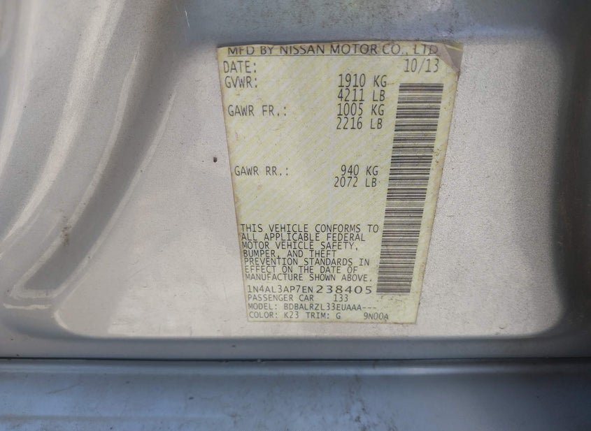 - VIN: 1N4AL3AP7EN238405