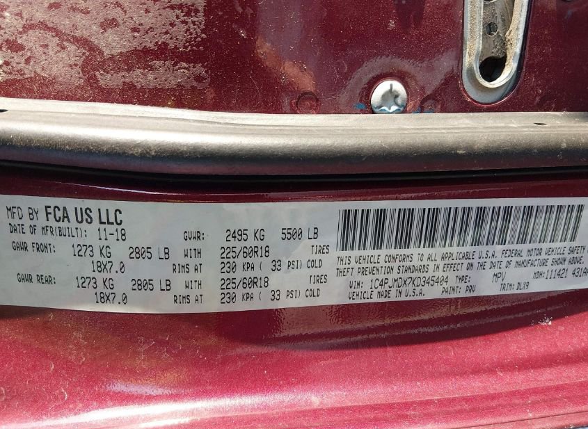 - VIN: 1C4PJMDX7KD345404
