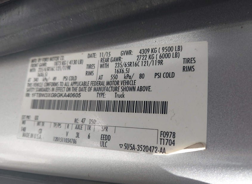 - VIN: 1FTBW3XG9GKA40605