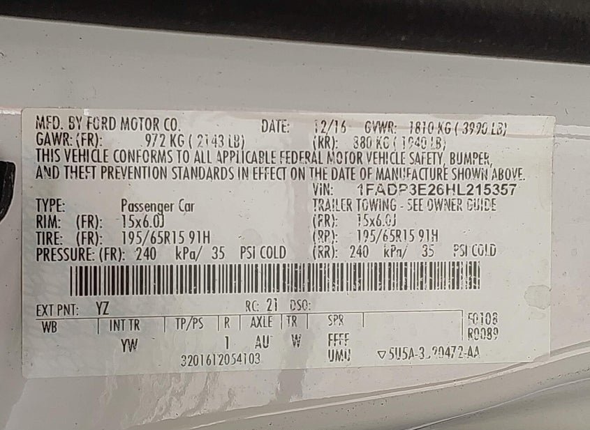 - VIN: 1FADP3E26HL215357