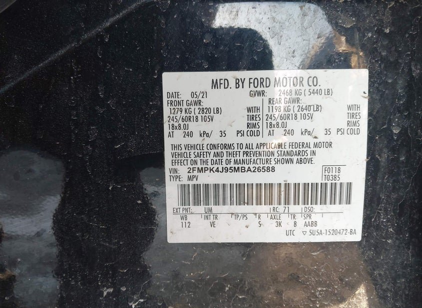 - VIN: 2FMPK4J95MBA26588