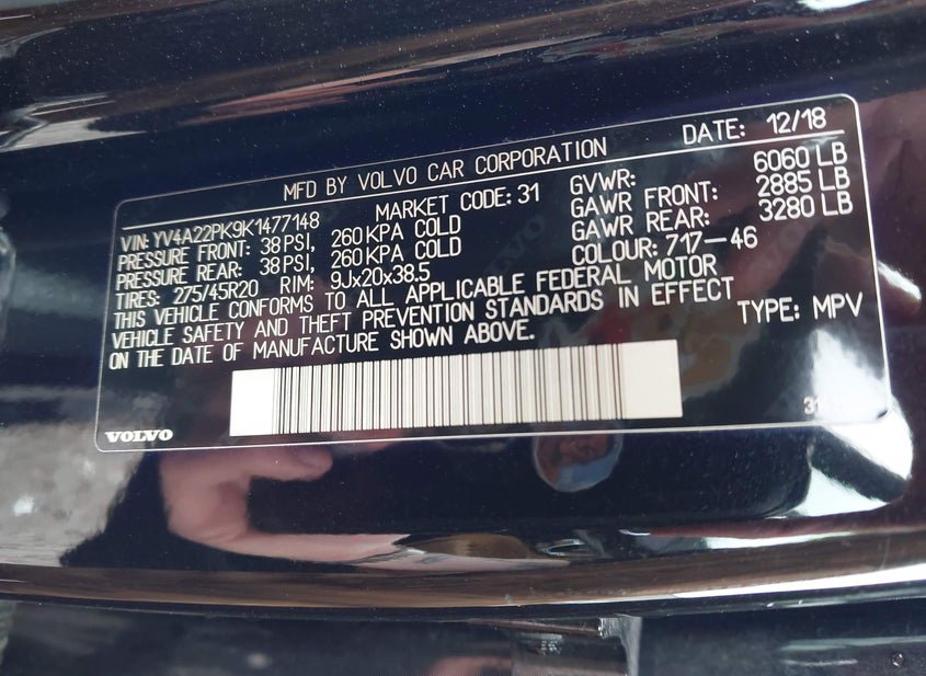 - VIN: YV4A22PK9K1477148