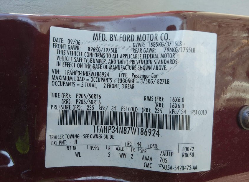- VIN: 1FAHP34N87W186924