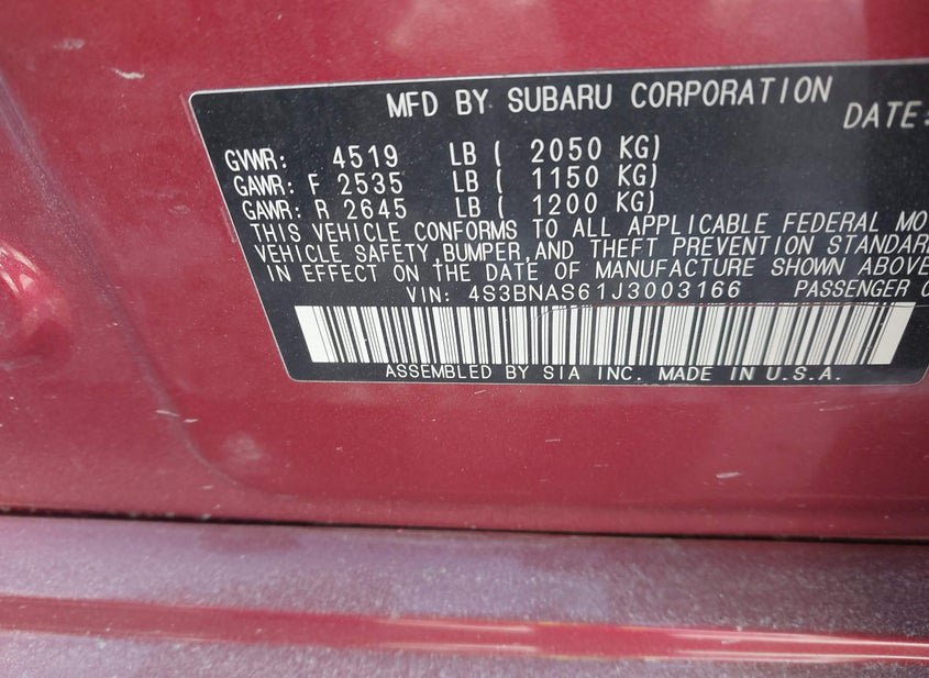 - VIN: 4S3BNAS61J3003166