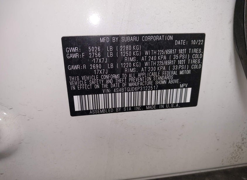 - VIN: 4S4BTGUD6P3122517