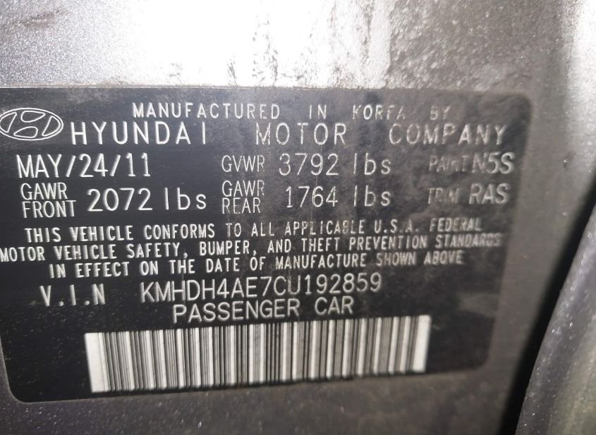 - VIN: KMHDH4AE7CU192859