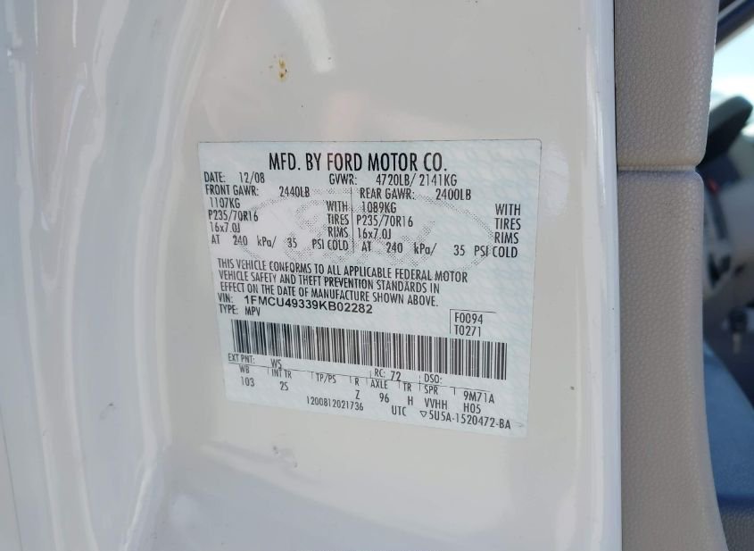 - VIN: 1FMCU49339KB02282