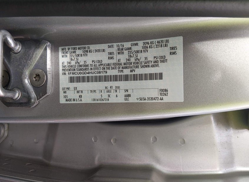 - VIN: 1FMCU0GD4HUC08179