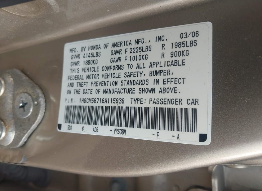 - VIN: 1HGCM56716A115939