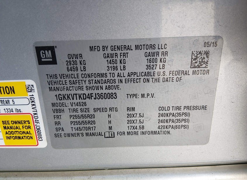 - VIN: 1GKKVTKD4FJ360083
