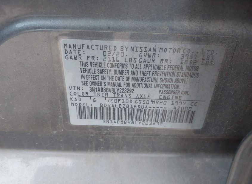 - VIN: 3N1AB8BV8LY223292