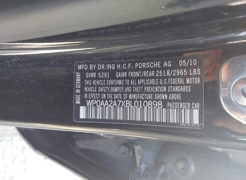 - VIN: WP0AA2A7XBL010898