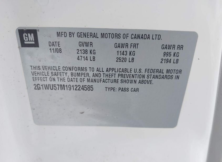 - VIN: 2G1WU57M191224585