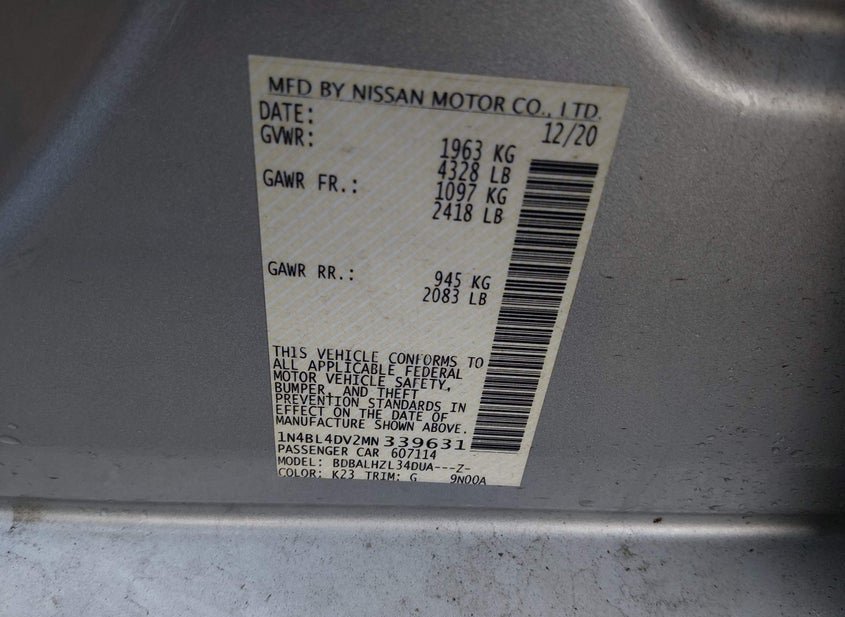 - VIN: 1N4BL4DV2MN339631