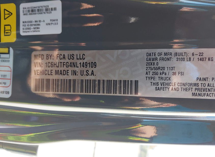 - VIN: 1C6HJTFG4NL149109