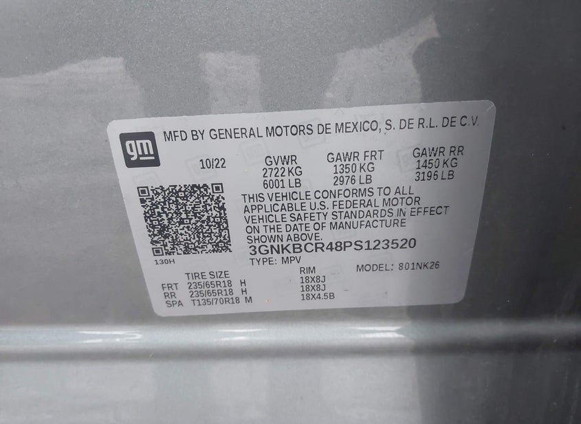 - VIN: 3GNKBCR48PS123520