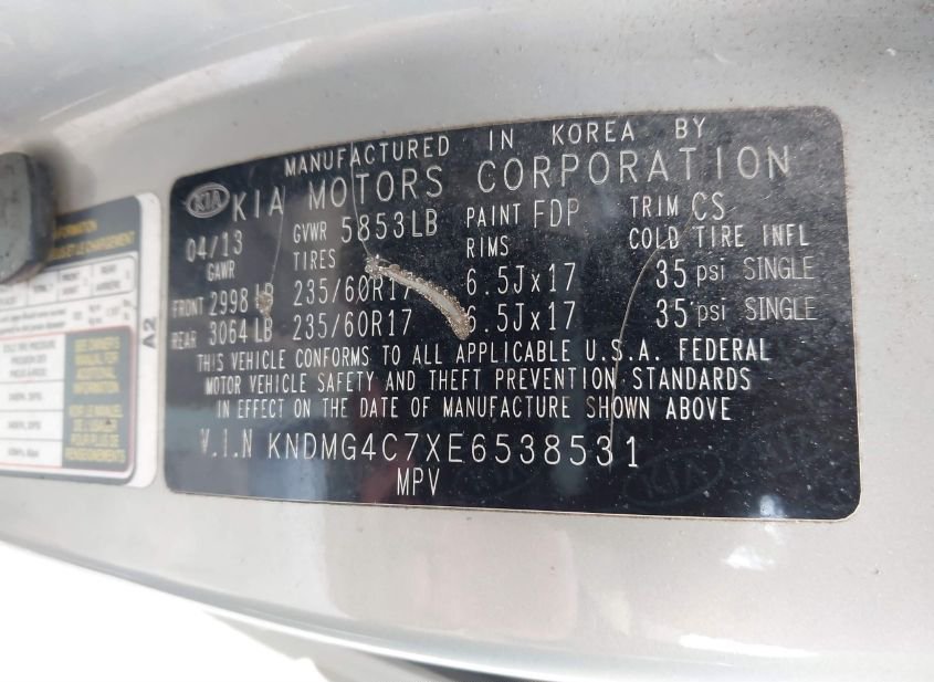 - VIN: KNDMG4C7XE6538531