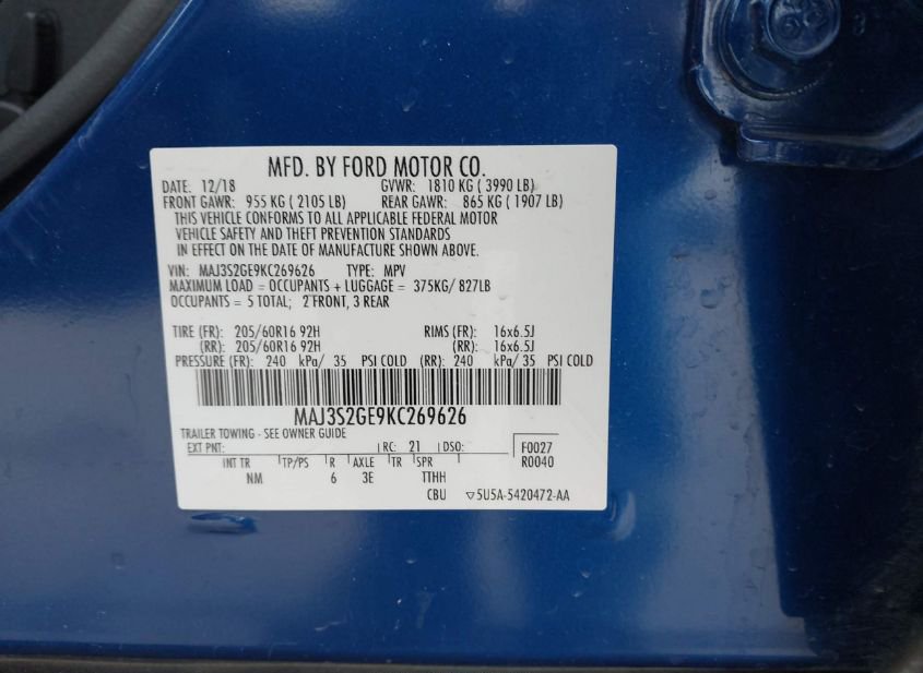 - VIN: MAJ3S2GE9KC269626