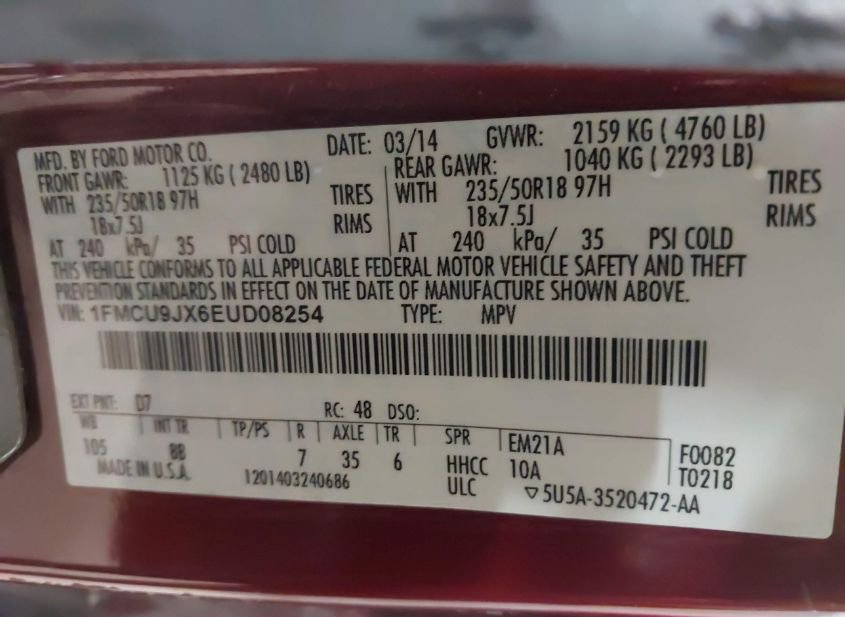 - VIN: 1FMCU9JX6EUD08254
