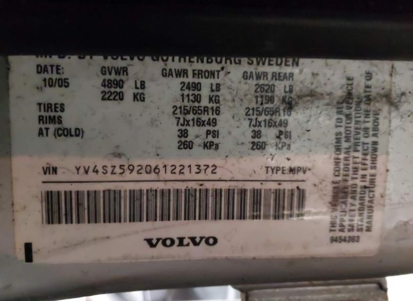 - VIN: YV4SZ592061221372
