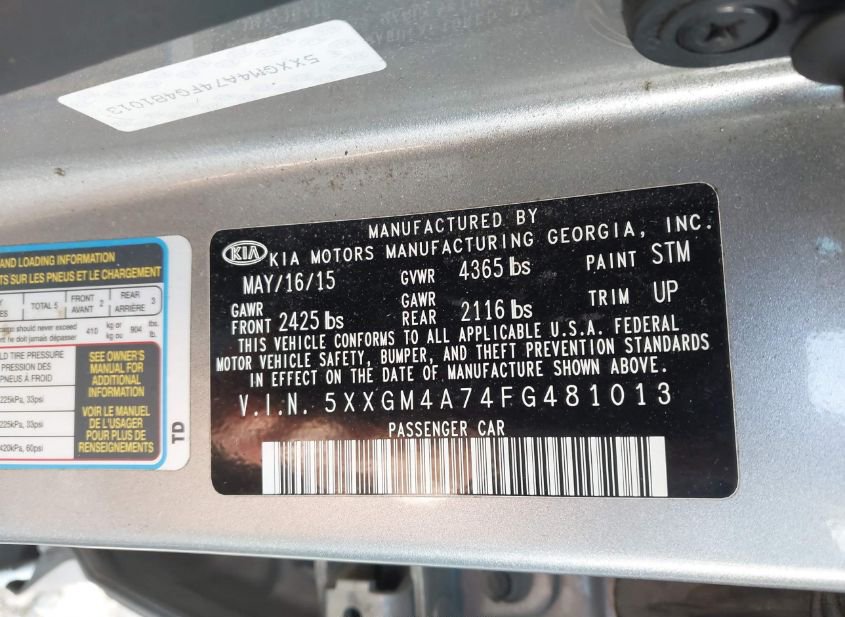 - VIN: 5XXGM4A74FG481013