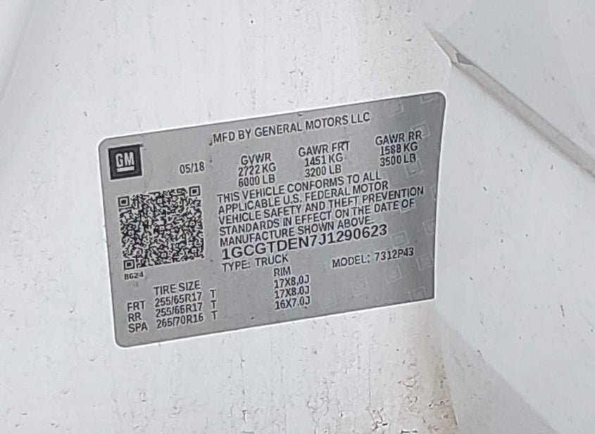 - VIN: 1GCGTDEN7J1290623
