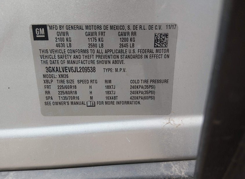 - VIN: 3GKALVEV6JL209538