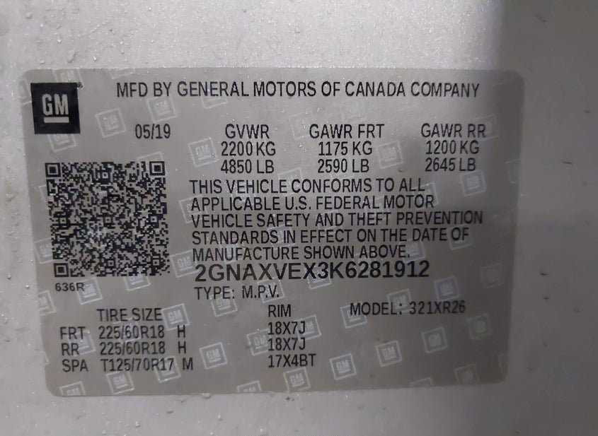- VIN: 2GNAXVEX3K6281912