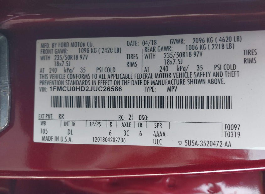 - VIN: 1FMCU0HD2JUC26586