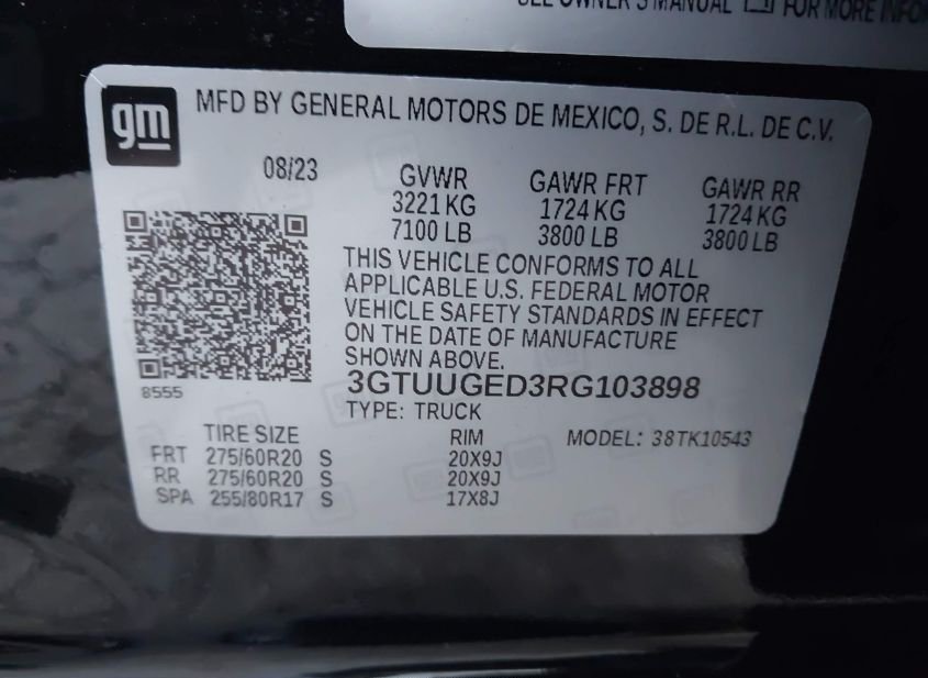 - VIN: 3GTUUGED3RG103898