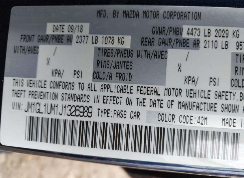 - Название лота: 2018 MAZDA MAZDA6 SPORT