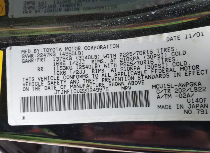 - VIN: JTJHF10U220249975