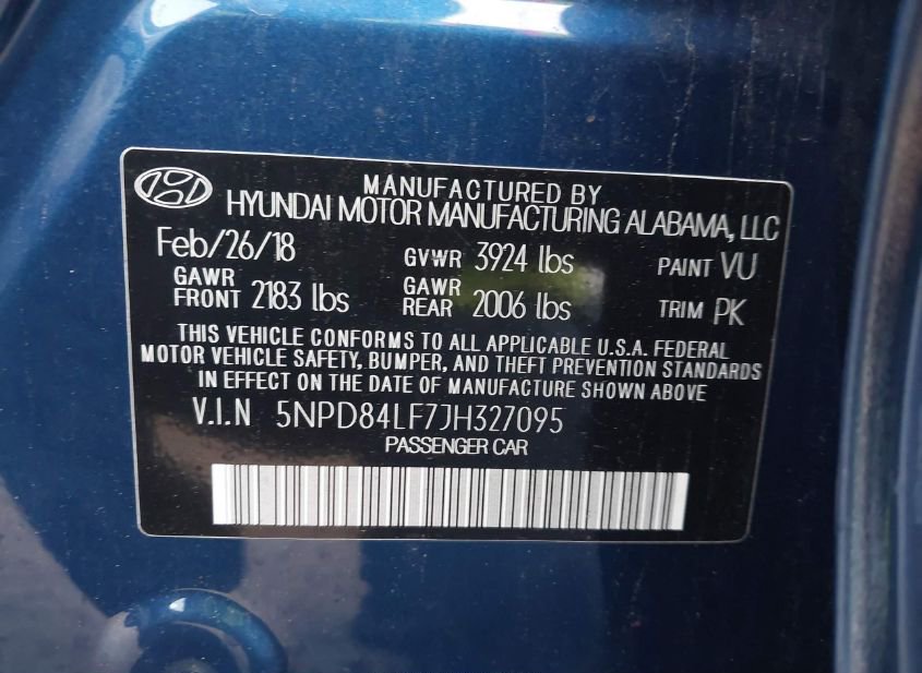 - VIN: 5NPD84LF7JH327095