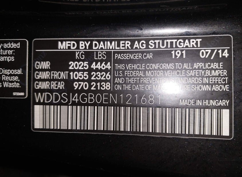 - VIN: WDDSJ4GB0EN121681