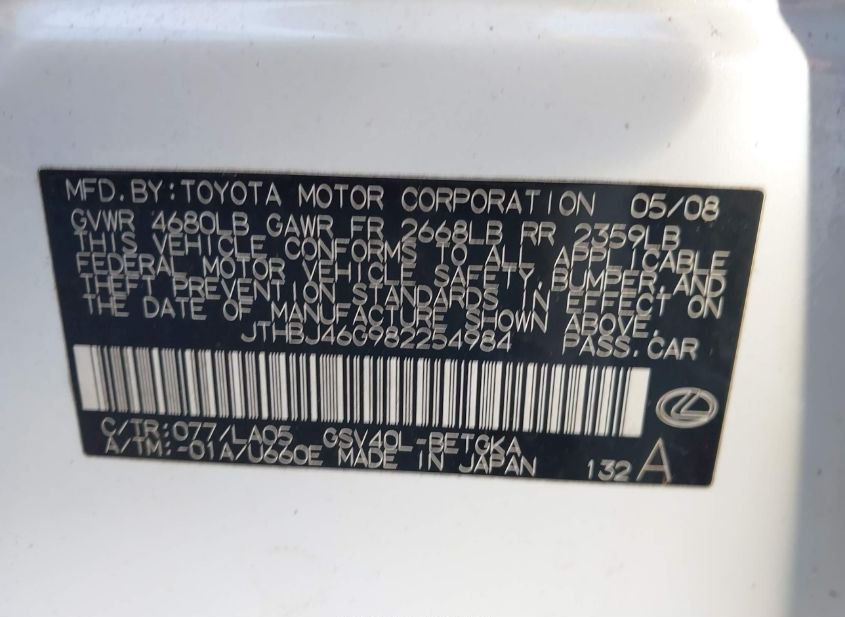 - Название лота: 2008 LEXUS ES 350
