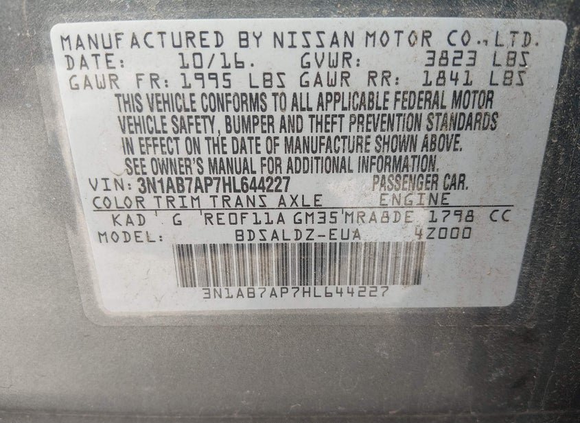 - VIN: 3N1AB7AP7HL644227