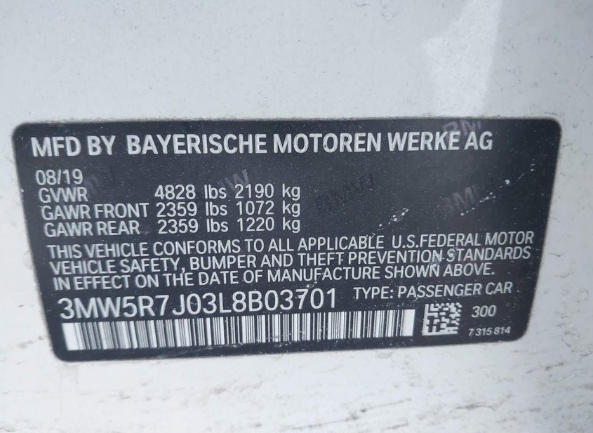- VIN: 3MW5R7J03L8B03701