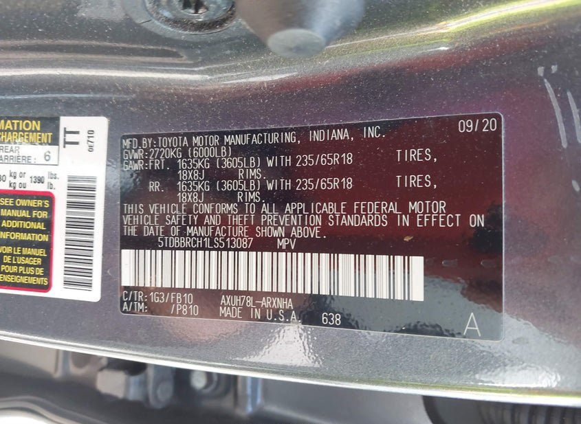 - VIN: 5TDBBRCH1LS513087