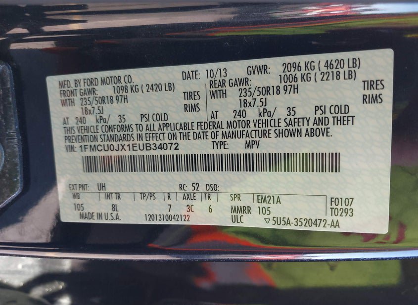 - VIN: 1FMCU0JX1EUB34072